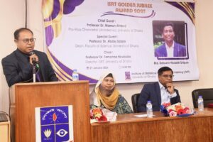 Congratulating the award recipient, Pro-Vice-Chancellor (Academic) Professor Dr. Mamun Ahmed remarked that this achievement is a matter of great pride not only for the student but also for the university as a whole. He emphasized the importance of collective efforts among teachers, researchers, and students to advance education and research, noting that coordinated initiatives are essential for attaining the university’s desired position in international rankings. He further encouraged talented students to contribute to cutting-edge research that would enhance the University of Dhaka’s global reputation.