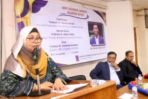 The programme was chaired by Professor Dr. Tamanna Howladar, Director of ISRT. Professor Dr. Abdus Salam, Dean of the Faculty of Science, was present as the Special Guest, while the Convenor of the Organising Committee, Professor Dr. Md. Israt Rayhan, delivered the welcome address. Faculty members, students, and guardians of the institute were also in attendance.