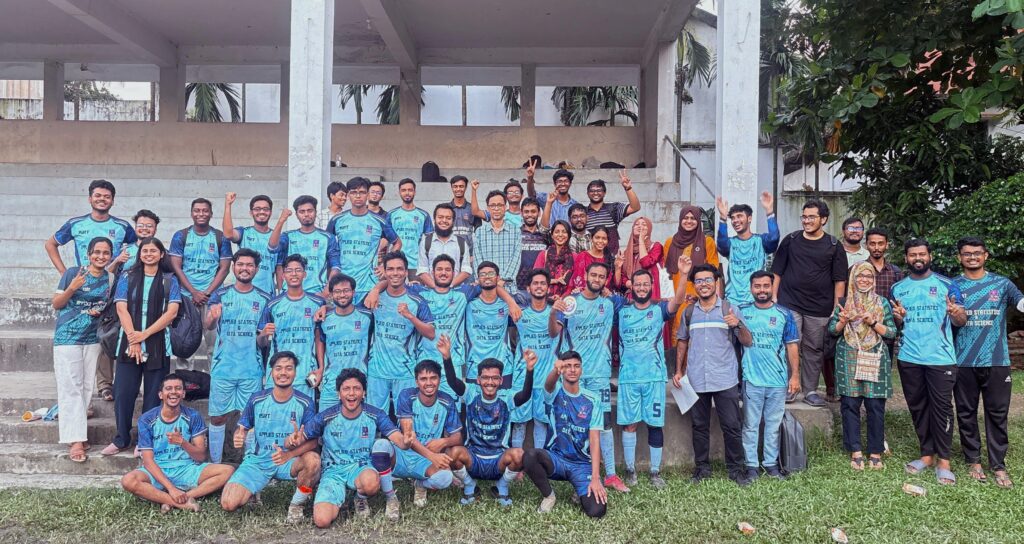We are delighted to announce that the ISRT football team claimed a remarkable victory in the first match of the second round of the Dhaka University Inter-Department Football Tournament 2025. On September 25, 2025, ISRT faced off against the Department of Pharmacy at the university’s central field.